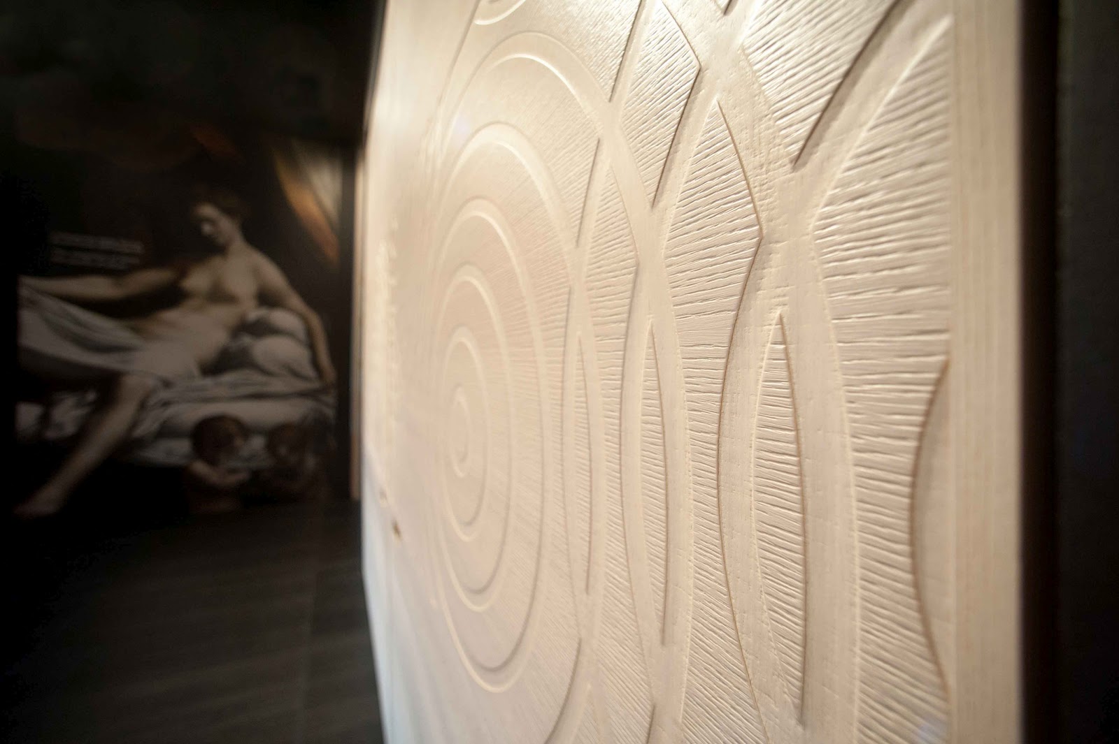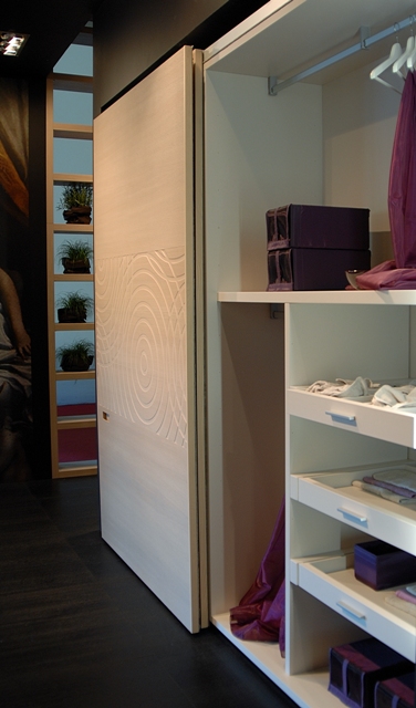 BE FREE wardrobe is available with “ RING, WAVE, SAIL, FLOWER and POSIDONIA “ decorated panels with two layers of veneer.